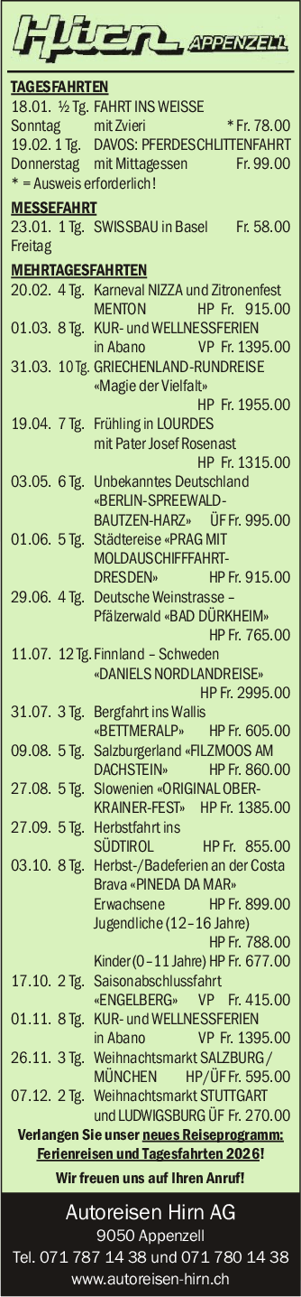 Autoreisen Hirn AG