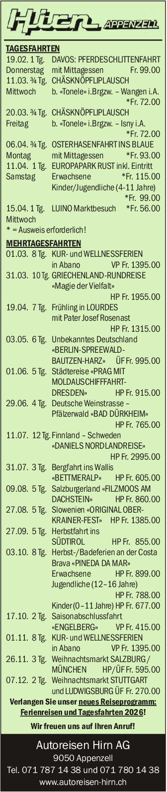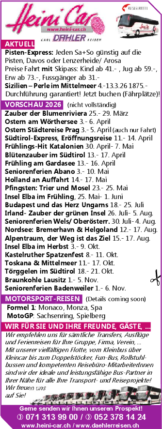 Tel. 071 313 99 00, 052 378 14 24 oder www.heini-car.ch