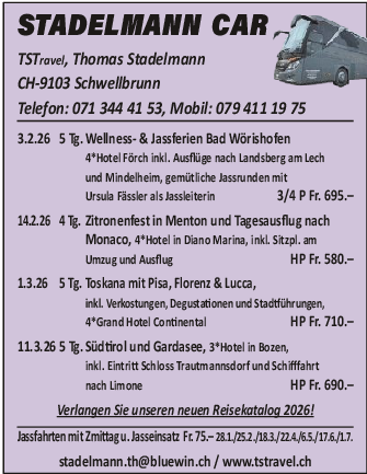 6 Tage, 23.3. bis 27.3. und 26.10. bis 31.10.2026
