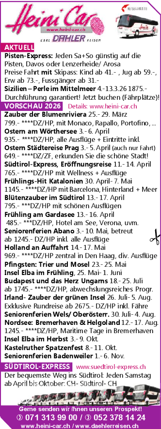 Tel. 071 313 99 00, 052 378 14 24 oder www.heini-car.ch