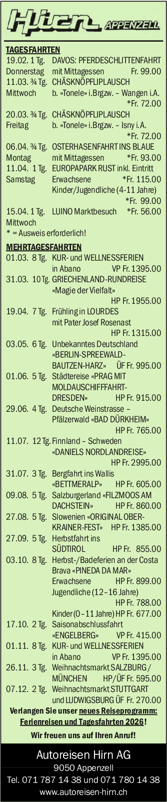 Autoreisen Hirn AG
