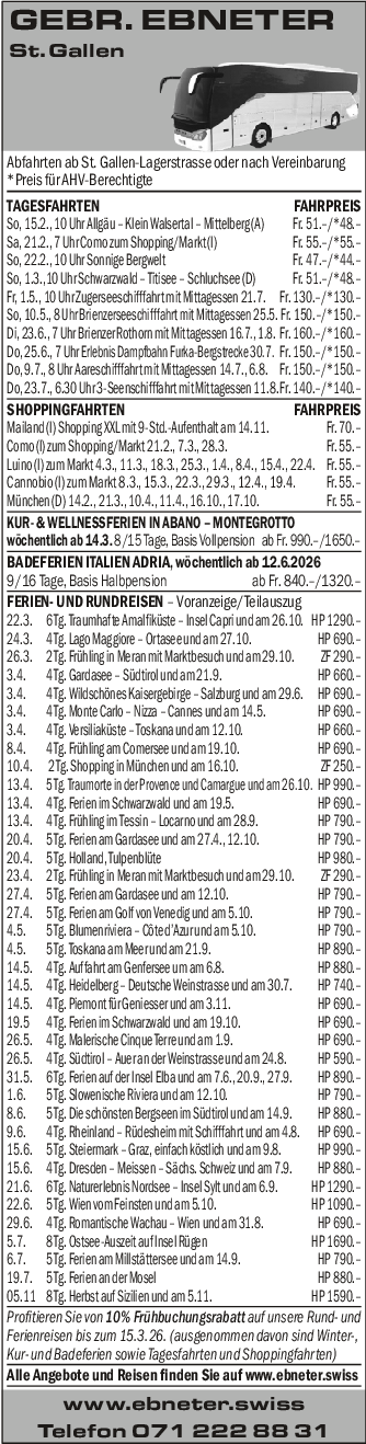 Telefon 071222 88 31 oder www.ebneter.swiss